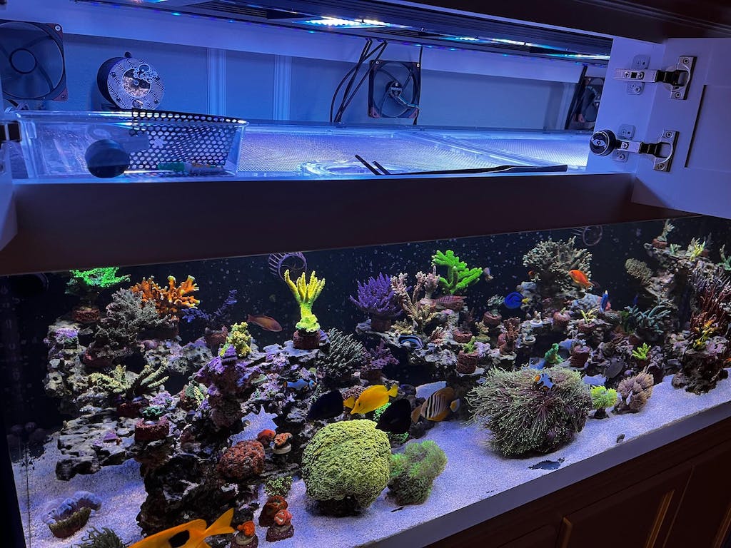 Large enough to fit all types of equipment through, like algae clips, turkey basters, PAR meters, and magnet cleaners without ever lifting the lid.