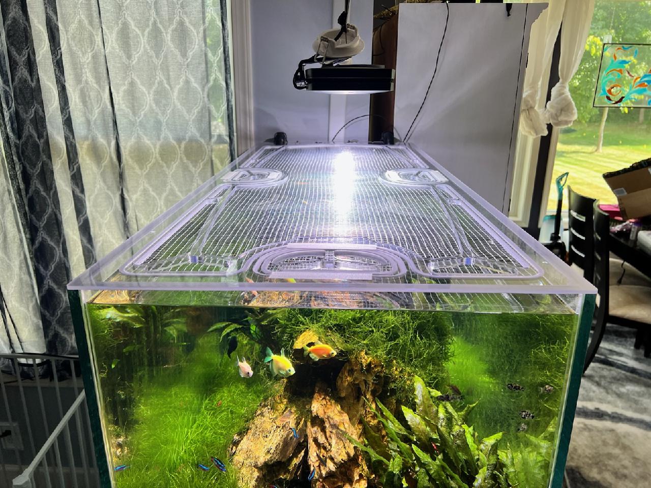 Nobody likes constantly topping off the tank with new water, big fish splashing water around their room, or cats inside their tank. Solve all of these with an Evap Cover.