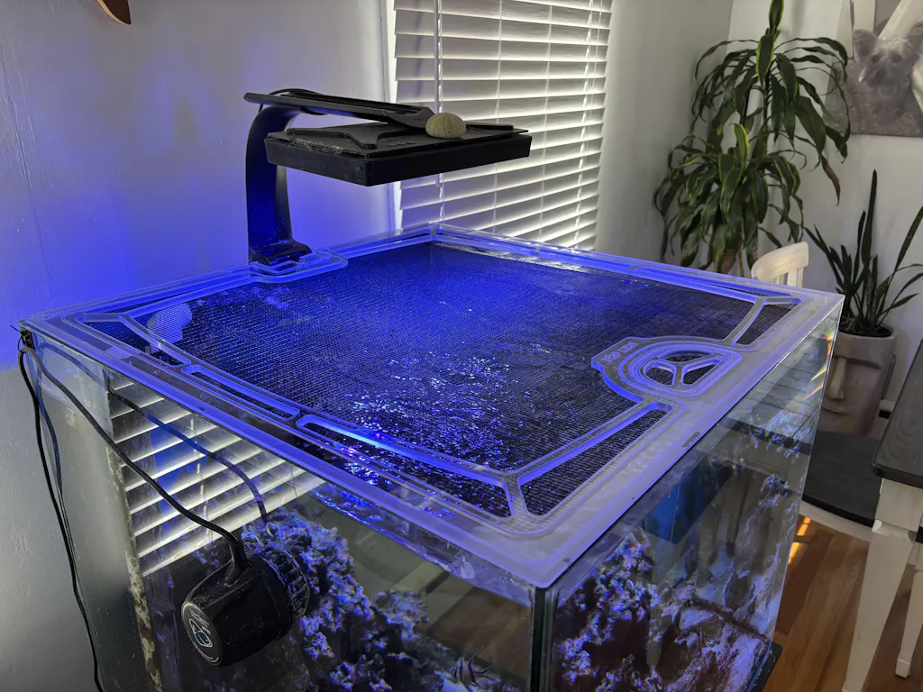 Nobody likes constantly topping off the tank with new water, big fish splashing water around their room, or cats inside their tank. Solve all of these with an Evap Cover.