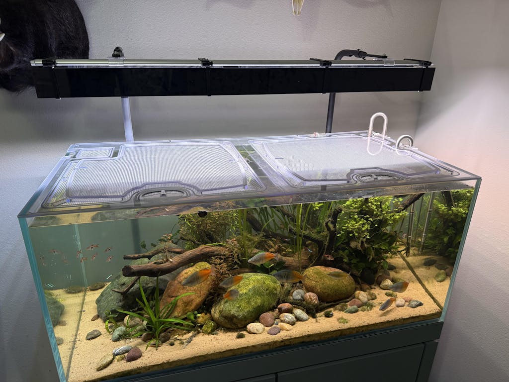 Nobody likes constantly topping off the tank with new water, big fish splashing water around their room, or cats inside their tank. Solve all of these with an Evap Cover.