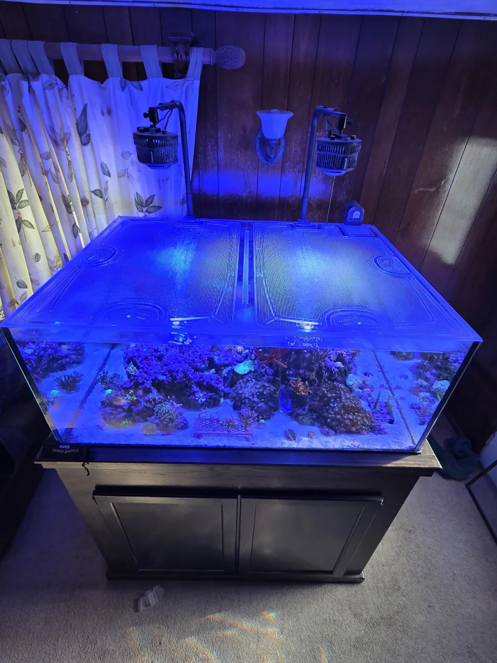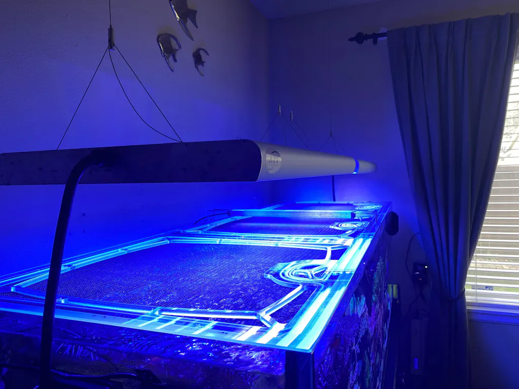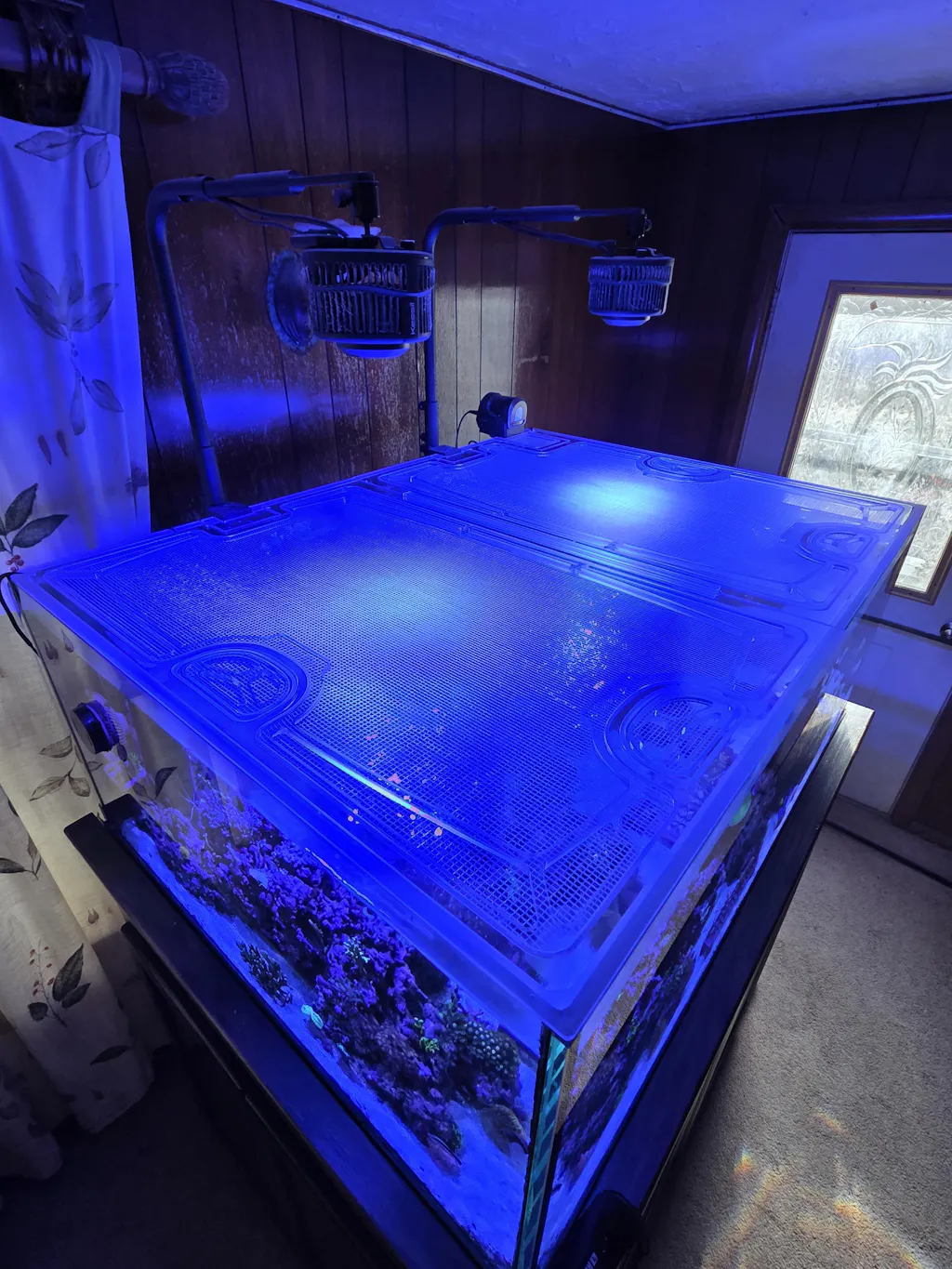 Our lid frames are made from polycarbonate, thick enough to thoroughly support the lid, but slim enough to keep away excessive condensation and salt creep. Our screens are individually made for us, with thin screen fibers that let through more PAR than other screens, and openings small enough (slightly larger than 1/8") for even the smallest fish or eels to not wiggle through. These materials are water-resistant, easy to clean, and provide long-lasting multi-year protection for your aquarium.