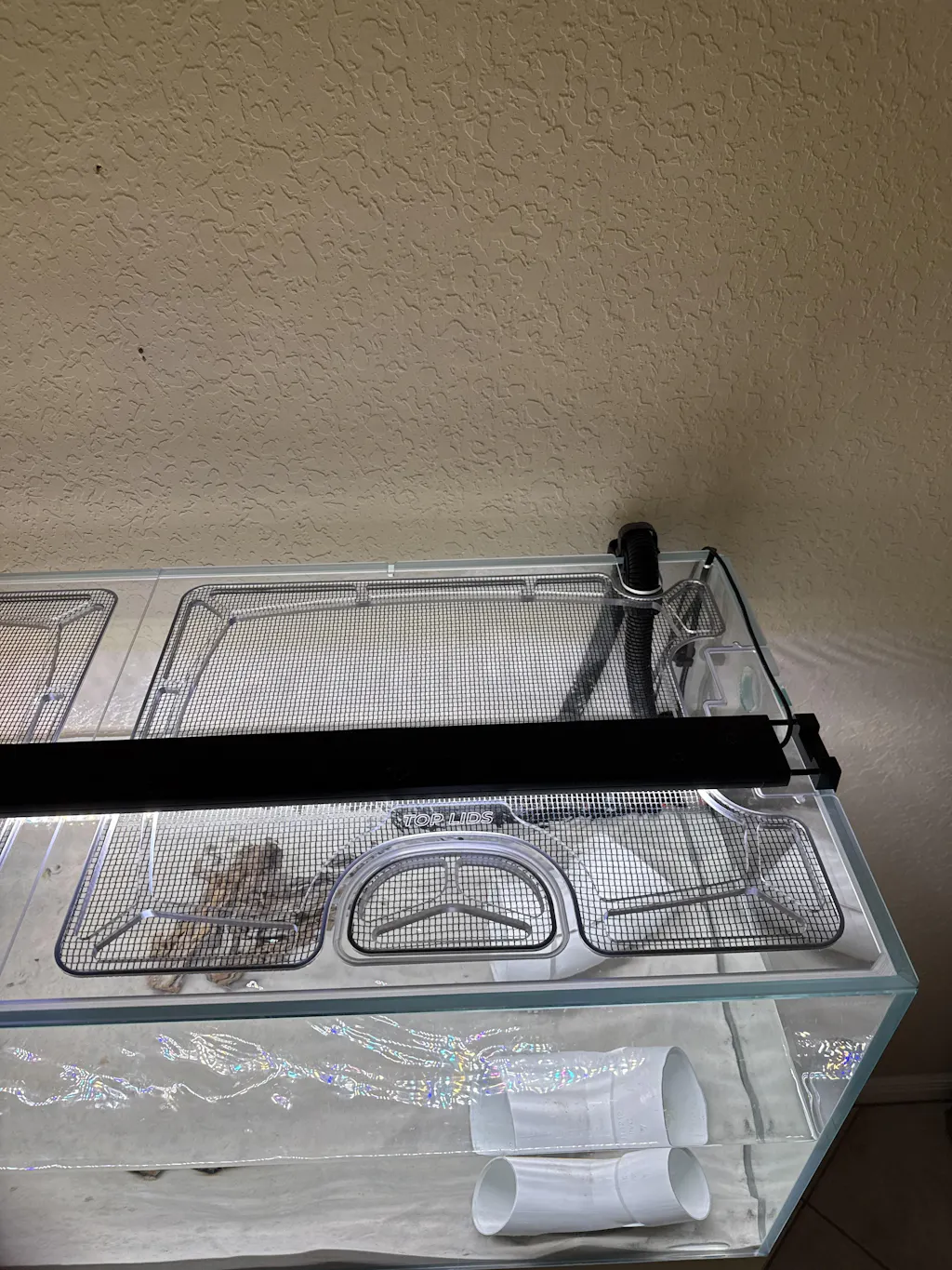 Nobody likes constantly topping off the tank with new water, big fish splashing water around their room, or cats inside their tank. Solve all of these with an Evap Cover.