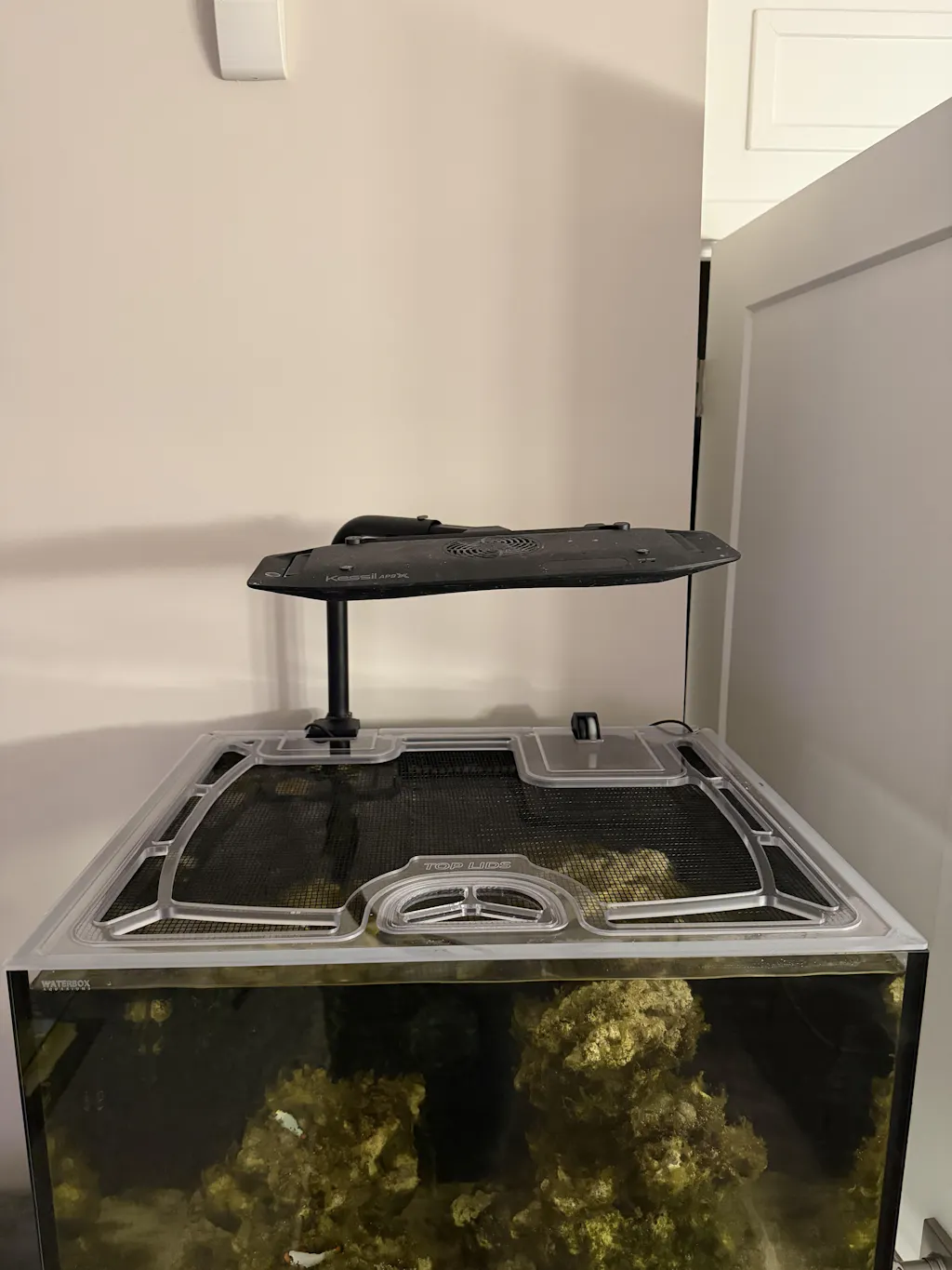 Nobody likes constantly topping off the tank with new water, big fish splashing water around their room, or cats inside their tank. Solve all of these with an Evap Cover.